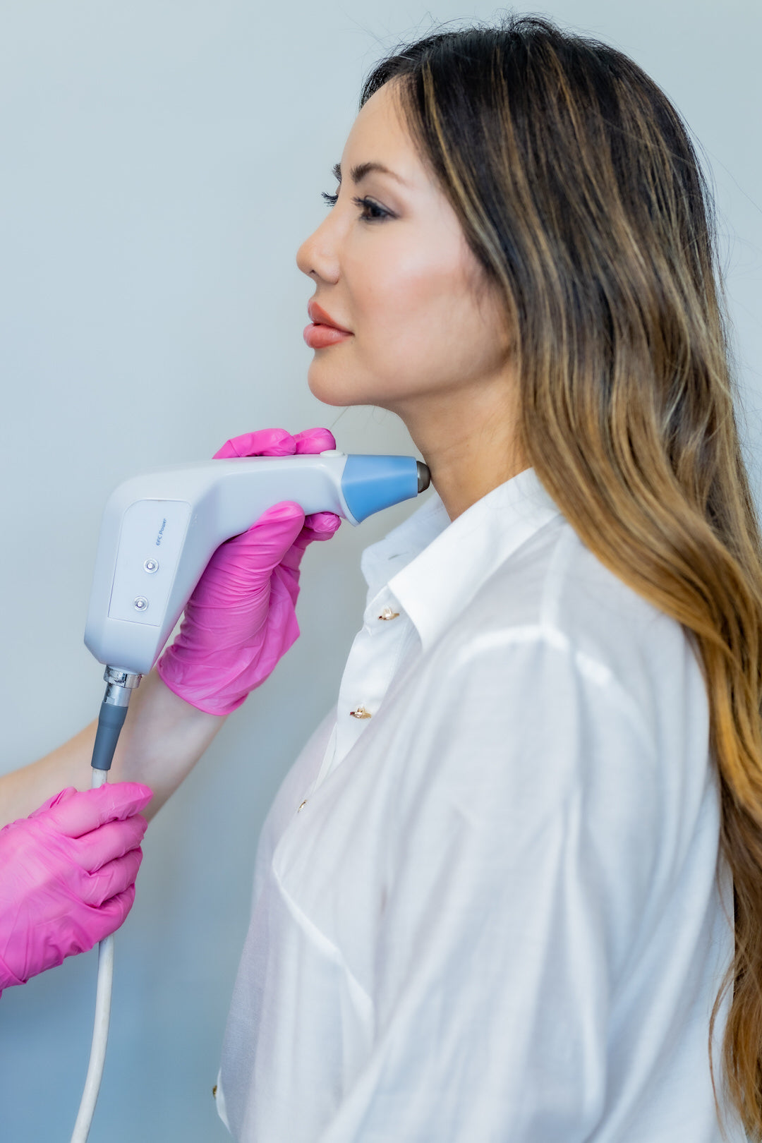 Radiofrequency is heat that stimulates collagen in the lower dermis. This treatment has no downtime, no pain, and instant results. You will notice tighter, brighter, and more lifted skin from this non invasive, enjoyable treatment.
